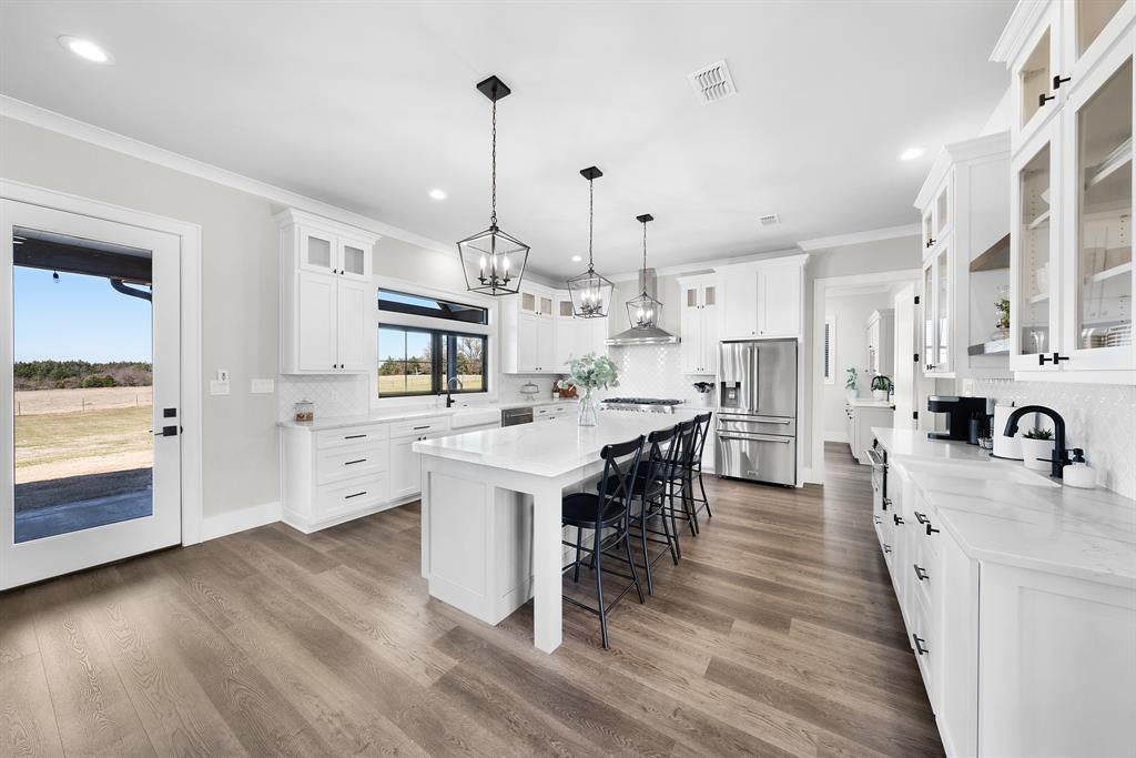 Welcome to this immaculate country retreat, perfectly situated on 2 serene acres just 10 minutes from Sulphur Springs and 5 minutes from the Country Club. This stunning property offers a spacious and versatile layout with 4 bedrooms, 3.5 baths, and an array of thoughtful features designed for comfort and convenience. The heart of the home is a living area that seamlessly flows into the chef’s kitchen, where you'll find a commercial gas range, marble countertops, a large island, and a charming coffee bar complete with a second sink. The primary suite offers a peaceful sanctuary with a spa-like ensuite bath featuring a double vanity, sleigh soaking tub, separate shower and a custom walk-in closet. Downstairs, you’ll also find a dedicated office, a large laundry room, a walk-in pantry, a guest half bath, and an oversized attached garage. Upstairs offers even more flexibility with a second living room, a second primary suite, and two additional bedrooms that share a hall bath, all with walk-in closets — ideal for guests or family. Outdoor living shines with spacious covered porches, including a rear porch equipped with an outdoor sink — perfect for entertaining. Additionally, the property boasts a second detached one-car garage with an extra storage area and an attached dog kennel for your furry friend. This property effortlessly combines modern luxury with practical amenities, offering a peaceful yet convenient lifestyle. Don’t miss your chance to call this extraordinary home your own!