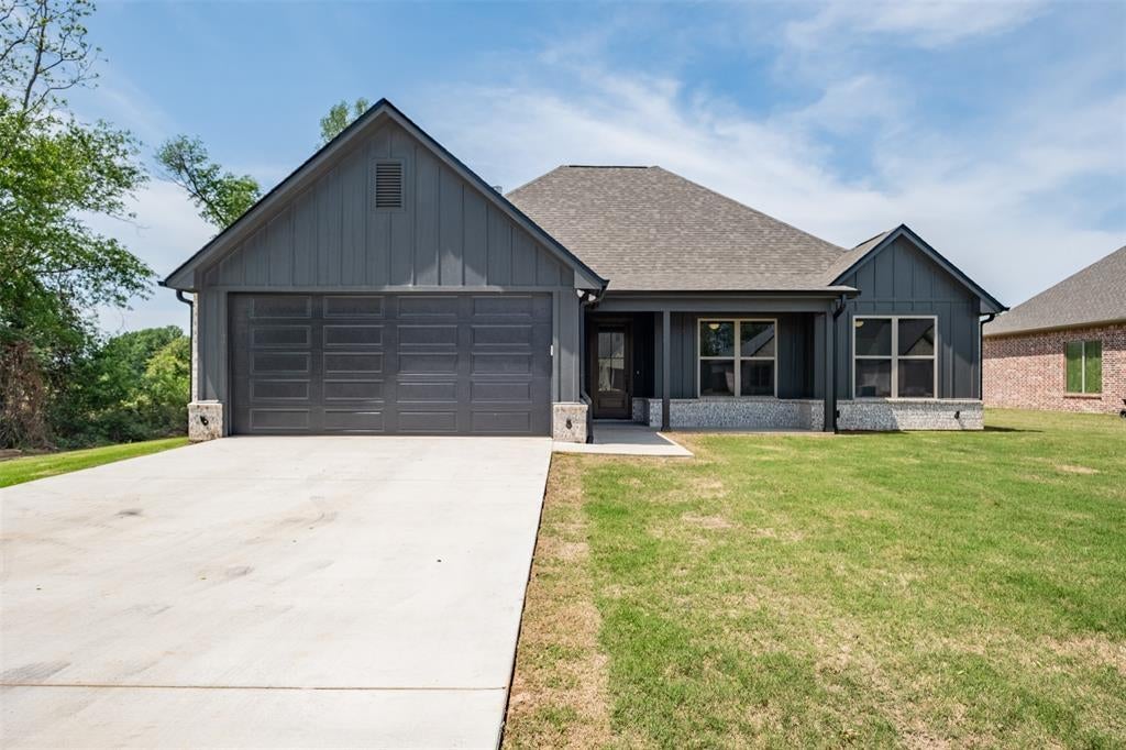 New Construction in Lindale ISD – Modern Comfort on a Spacious Lot Welcome home to this beautiful brand-new construction in the heart of Lindale ISD, set on a large 0.7-acre lot just minutes from downtown—but tucked away at the end of a quiet, no-through-traffic street. This thoughtfully designed 4-bedroom, 2-bathroom home features a bright, open layout with vaulted ceilings and oversized windows that flood the living space with natural light. The living room centers around a striking wood-burning fireplace—perfect for cozy evenings with family and friends. In the kitchen, you'll find custom cabinets, a large island ideal for gatherings or casual meals, quartz countertops and finishes that strike the perfect balance between style and function. The spacious primary suite includes a generous walk-in closet and a spa-like bathroom with a separate soaking tub and large shower. Step out back to enjoy the covered patio and the peaceful feel of the oversized lot. Built with energy efficiency in mind, this home is as practical as it is beautiful—ready for you to move in and enjoy. If you're looking for modern design, space to breathe, and a top-rated school district, this home checks all the boxes.
