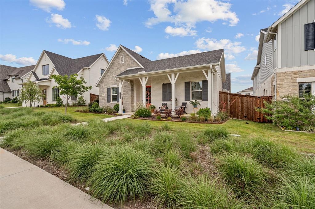 Built in 2022 by Village Homes, this single-story stunner pairs timeless design with modern comfort. The great floor plan features 3 spacious bedrooms, 2 full baths, an open concept living, dining and kitchen area, PLUS a versatile flex space—ideal as an office, second living, or playroom. The beautiful living area is centered around a cozy fireplace and boasts vaulted ceilings with exposed wood beams. The chef’s kitchen features a large center island, gas range, stainless appliances, and plenty of storage. Outside, the stone-and-brick exterior and welcoming front porch deliver curb appeal for days. A covered side porch and private backyard make it easy to relax and entertain. And then there’s Walsh itself: pools, parks, trails, tennis, a fitness center, year-round events—a community built for connection.