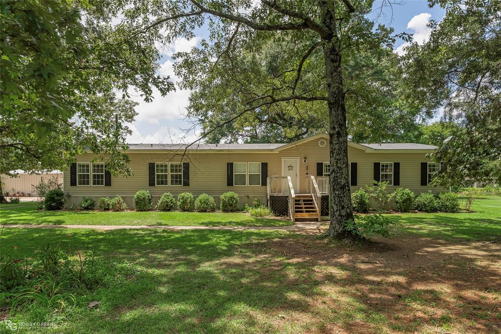 Escape the hustle and enjoy peaceful country living with this beautifully maintained 5-bedroom, 3-bath manufactured home nestled on 10 picturesque acres. Boasting 2,400 sq ft of living space, this home offers room for the whole family and then some! Step inside to find luxury vinyl tile flooring throughout most of the home, combining comfort, durability, and style. The open floor plan offers a welcoming living area, spacious kitchen, and ample room for entertaining or relaxing. With five bedrooms, including a generous master suite, there's space for everyone. Enjoy your mornings on the charming 10x10 front porch and your evenings unwinding on the expansive 10x32 covered back porch overlooking the peaceful backyard and stocked pond. Perfect for fishing, wildlife watching, or simply soaking in the view.Additional features include a six car parking pad, approximately 100 yard concrete driveway, and the freedom of being outside city limits with no city taxes! PLUS, a 1500 sq. ft. shop to house all your toys. Whether you're looking for a full time residence or a weekend retreat, this property offers a rare combination of privacy, space, and convenience. Don't miss your chance to own this slice of country paradise!