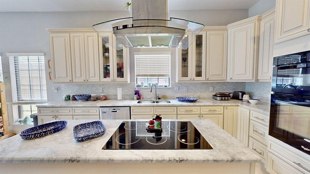 Welcome to this beautifully updated property on an oversized lot conveniently located mins of DNT or GBT! Ask about 2% rate buy-down! You are greeted by warm hardwood floors that extend thru the entire house. The beautiful staircase with wood steps and white risers adds a touch of elegance. To the right of the entry is a spacious dining room with a bay window, lots of light, and a beautiful light fixture. To the left of the entry is Bedroom 4, but could also be used as a study or additional living area. This room features a bay window, large closet, & access to a Full BathRm with a tub-shower combo. The main living area is spacious and inviting, with coffered ceiling and elegant lighting. A cozy fireplace with gas start and gas logs, upgraded millwork, and molding accent the fresh neutral paint. French doors lead to a large sunroom, perfect for a playroom, craft room, or any other space filled with light. The updated kitchen offers a large dining area, pretty lighting, 42-inch custom cabinets with soft close and shelf pull-outs, beautiful marble counters, & designer backsplash. The kitchen features upgraded appliances, including a new cooktop, SS overhead vent, built-in dishwasher, wall oven, and microwave. Outside, you will find a covered patio and a large grassy backyard with a wooden fence, providing privacy and a great space for your fur babies and outdoor entertaining! Upstairs, there's a large landing with a built-in window seat, perfect for a home office space. The two additional secondary BdRms upstairs are spacious and bright, with fresh paint and ample closet space. The Primary suite features a huge bedroom with a fireplace and an amazing en suite bath with a standalone tub, large separate shower with a shower tower, dual sinks with marble countertops, and a huge walk-in closet. This updated home also boasts a recent roof, flooring, paint, and many other updates and upgrades. Don't miss out on the opportunity to make this stunning property your new home!
