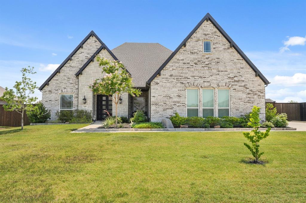 SELLER IS MOTIVATED! $2000 REALTOR BONUS FOR A TRANSACTION THAT CLOSES ON OR BEFORE OCTOBER, 31 2025. This elegant, north-facing Modern Farmhouse sits on a private 0.5-acre lot in the highly desirable Adkisson Ranch community. With 3,866 sq ft all on one level, this sprawling 4-bedroom, 3.5-bath home offers luxurious features, timeless finishes, and an ideal layout for both everyday living and entertaining. The natural stone, brick, and cedar exterior welcomes you into a bright, open floor plan flooded with natural light. The spacious living room features a soaring vaulted ceiling with built in surround sound that also broadcasts to the patio, gas log fireplace, and custom built-in bookcases. A private study with a coffered ceiling and a separate media room add flexibility for work and play. The gourmet kitchen is a chef’s dream—complete with 10' custom cabinetry with glass fronts and lighting, a huge island, a gas cook top, double convection ovens, and a walk-in pantry. Interior finishes include Luxury Vinyl Plank, tile, and carpet flooring, stunning accent walls, and extensive built-in cabinetry and storage. Retreat to the luxurious primary suite, which feels like a personal spa with a large soaking tub, large walk-in shower, dual vanities, and a massive closet. Three additional spacious bedrooms provide ample room for family and guests. Enjoy indoor-outdoor living with double sliding patio doors that lead to a beautifully landscaped backyard oasis. Relax in the large hot tub or entertain on the extended patio. Exterior features include an 8’ board-on-board privacy fence with rolling gate, full-yard sprinkler system, 10x10 storage shed, and drought-tolerant landscaping. Additional highlights: huge 3-car garage with epoxy-coated floor, extended concrete driveway, central vacuum system, energy-efficient HVAC, and whole-house gutters. This one-of-a-kind home blends custom design with modern comfort—don’t miss the opportunity to make it yours!