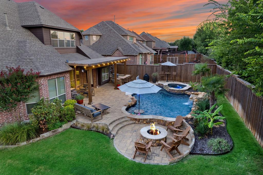 Hi, I'm Claire - 7521 Claire Lane to be exact. I was built in 2012, but I'm aging like fine wine. A little about me - I’m a rare 1.5-story stunner on a corner lot with all my bedrooms on the first floor - because who wants to trek up and down stairs all day? My 4th bedroom can double as an office and has it's own large closet. I’ve got a playful side too - my upstairs game room comes with a half bath and is pre-plumbed for a shower, so I can easily transform into a second primary suite if that’s your vibe. My Interests - Pool parties in my private backyard oasis - heated pool, raised spa, boulder grotto with waterfall + sunken gas fire pit = my ultimate date night. I enjoy sipping my wine while I watch the sunset - yes, I have a built-in wine fridge and wine rack - game nights around the dining room table, driveway basketball, or chalk-art afternoons thanks to my extended driveway that comfortably fits a 3rd SUV. Who is my perfect match? Someone who loves cozy nights by the fire, appreciates the finer things in life like hand-scraped hardwoods, coffered ceilings and modern lighting, and wants a long-term commitment in Wylie ISD. Bonus Points if you like endless hot showers and extra storage - I’ve got two tankless water heaters in my 2.5 car garage just for you! Let’s make it official - come see me in person before someone else swipes right! Roof replaced 2016, Custom Gold Medal Pool installed 2017 with 12 in-ground piers and custom paver pool deck. Pool replastered with Quartz Pebbletec in 2023. 270 sf Pergola with electric outlets, bistro lights, and mounted fans and heaters so you can enjoy the backyard year round. Built-in outdoor kitchen with Blaze grill, outdoor fridge and dual compartment trash bin. French drains on south side of the yard to the street and north side to the retaining wall. Ecobee smart thermostat with sensors in living and bedrooms. This is the unicorn property you've been waiting for!