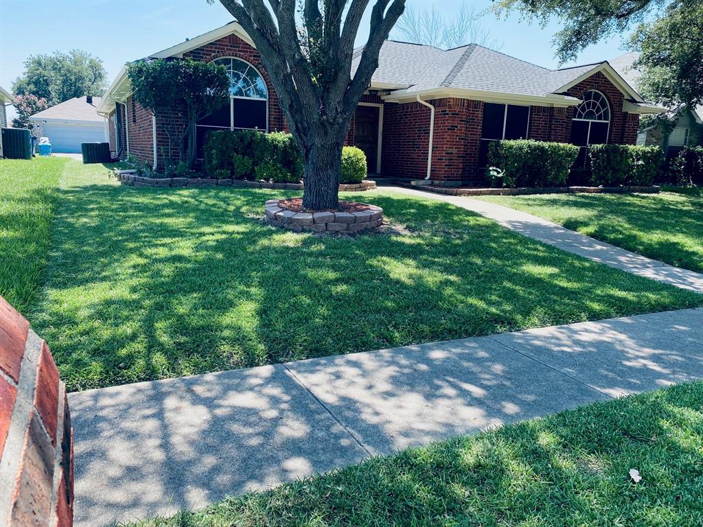 Amazing house with new exterior paint. Located a block from Elementary School. Close to all shopping and easy access to Firewheel Mall and major roads including George Bush Tollway. Roof shingles and Air Conditioning system replaced within the last two years including Gutters. Inside you will have Custom wood flooring in the Living room with an inviting fireplace. To your far right will be the Primary bedroom which features separate tub and shower a double sink Vanity. Kitchen is equipped a wonderful gas range. Also has an enclosed patio and Double carport besides the garage.