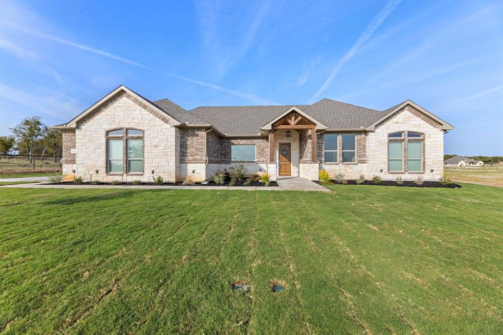 Fantastic brick and stone country home. This 3 bedroom, 2 bath has an office which could be a 4th bedroom. The large family room boasts of a bright and light open floor plan, vaulted, beamed ceiling, a built-in dry bar, a fantastic floor to ceiling stone gas log fireplace with raised stone hearth, and opens up into the dining room and kitchen. The gourmet kitchen boast of a huge window over sink, has a 5 burner gas stove, pot filler, oversized island with breakfast bar, a pantry and loads of custom cabinets. The master en-suite boasts of an oversized walk-in closet and an amazing double steam shower. All located on a large acre with a 18x13 covered patio with decorative lighting and ceiling fan, wired for outdoor flat screen tv, plumbed for gas for your outside grill and a stone wood-burning fireplace. Bedroom 2 and 3 have vaulted ceilings which make them seem so much roomier. Office has crown molding and built-in bookshelf. Walls are foam insulated and attic is a combined foam and blown.