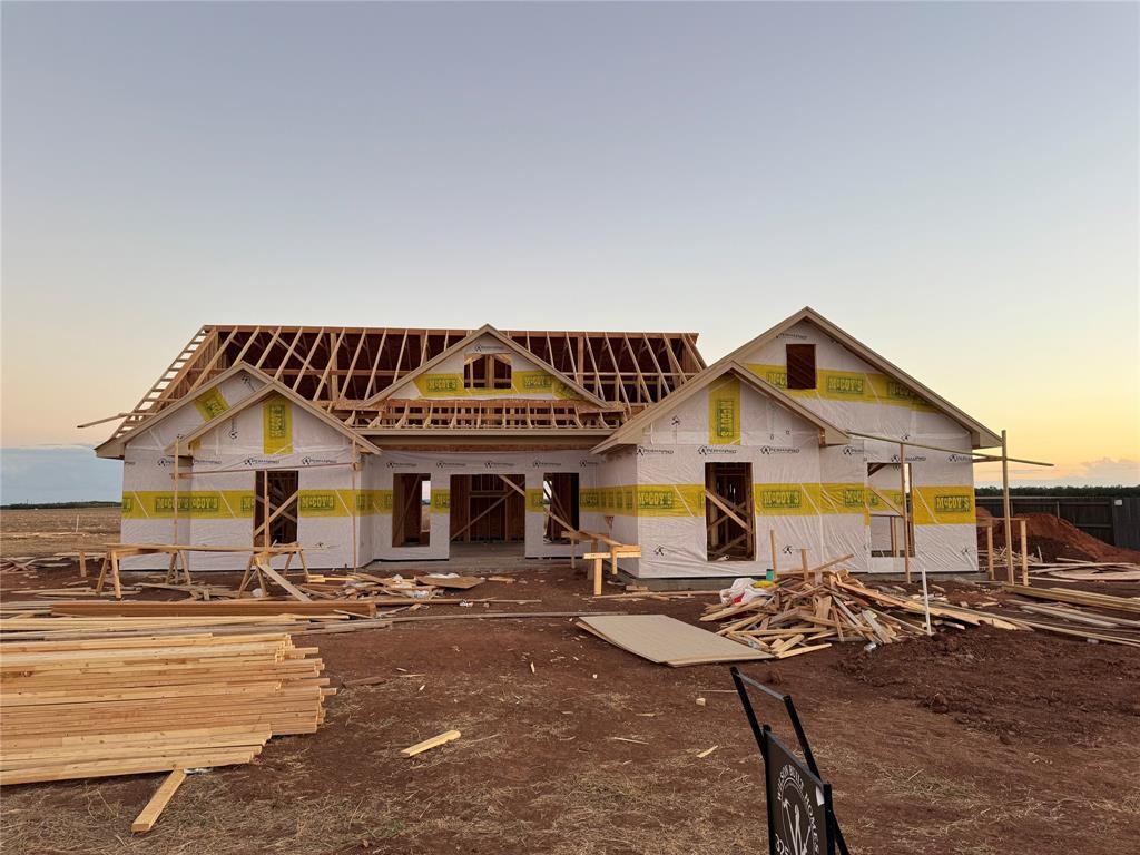 This stunning new 4-bedroom, 3-bath home by Wilson Built Homes is located in the sought-after Jim Ned ISD on a half acre lot! The open floor plan features a spacious living room with a wood-burning fireplace and flows effortlessly into the kitchen and dining area. The kitchen is beautifully designed with quartz countertops, stainless steel appliances including double ovens, electric cooktop, microwave, dishwasher, and a walk-in pantry. The primary suite offers a true retreat with dual sinks, a soaking tub, tiled shower, and large walk-in closet. A private guest wing includes a Jack-and-Jill bath connecting two bedrooms with separate vanities, plus an additional guest suite with its own full bath. Luxury vinyl plank flooring runs throughout the home, paired with abundant storage. Exterior features include a sprinkler system with sod in the front yard and a 6-foot privacy fence in the backyard. A perfect blend of style, comfort, and quality craftsmanship—all built by Wilson Built Homes in Jim Ned ISD! Hurry Now and You can still make selections!!