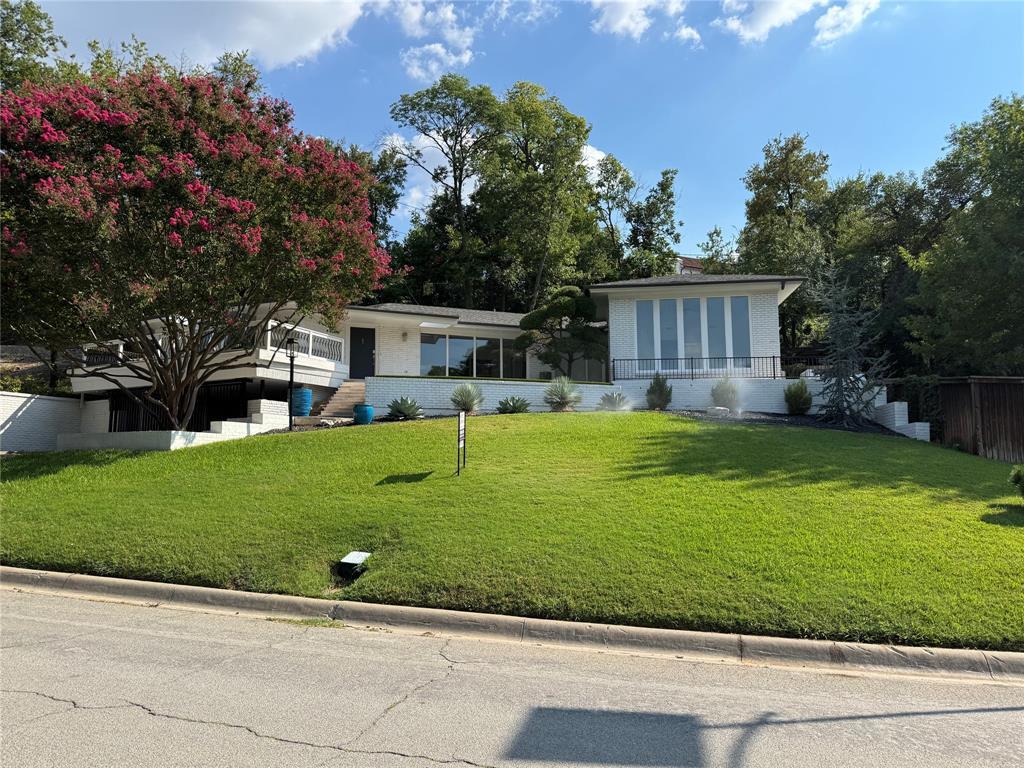 Unique one level Contemporary Modern STUNNER designed by renowned Los Angeles architect, A. Quincy Jones. His signature 1950's style of open-plan layout along with the integration of natural materials, plenty of natural light, as well as creative proportions and detailing is on full display in this sought after westside neighborhood, Northcrest. Home features three bedrooms, two baths, open floorplan with two large open living-dining areas, walls of windows, recessed lighting, ceiling fans, dry bar with beverage cooler, built-in bookshelves, stone fireplace; newly remodeled primary bath with dual sinks, quartzite countertops, rain head shower feature, built-in cabinetry in primary closet; covered front porch with stone steps and decking, front balcony, rear entertainment patio with stone wood burning fireplace and built-in gas grill. Metal fenced rear yard, side yard with privacy wall and iron fencing, sprinkler system. Modern landscaping along with brick and stone retaining walls offer spectacular curb appeal. Home has been impeccably updated and maintained.