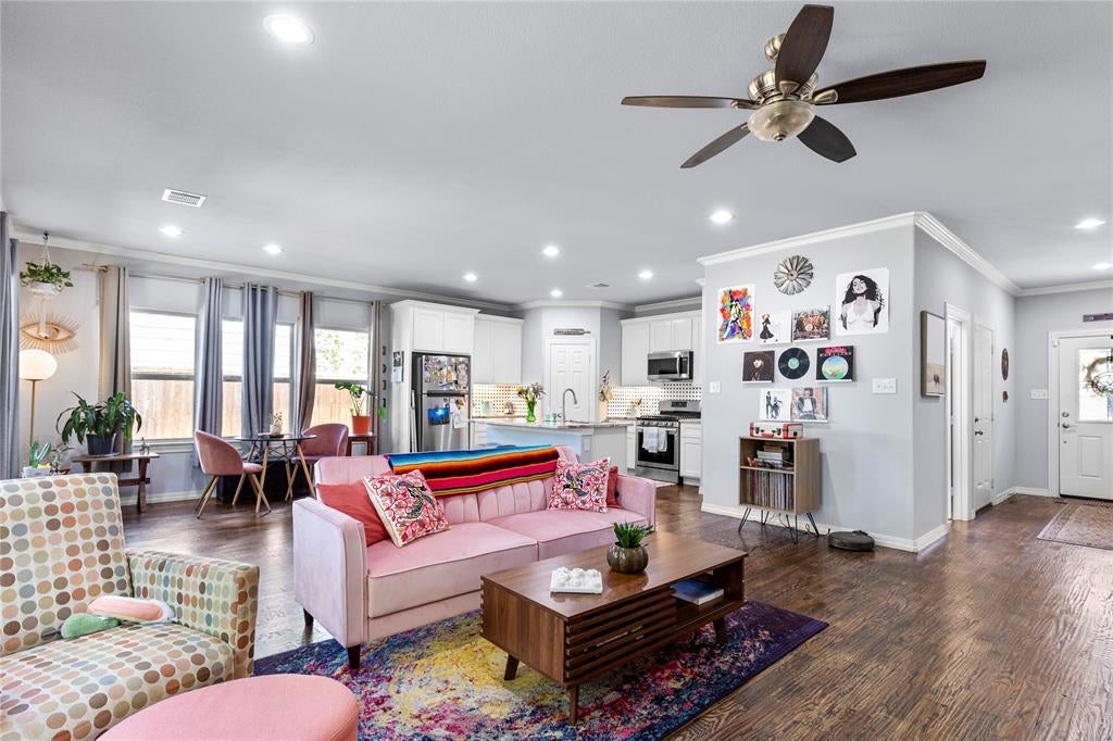 Newer home in established neighborhood so you get the charm of the mature trees and larger lot with the confidence of a newly built home. Walk in to open floor plan, hand scraped hardwood floors, a gorgeous white kitchen with solid counters and an island plus tons of windows that view into the pecan tree shaded yard and enormous storage building in back. This home's second and third bedrooms are ample sized and the plenty of space in the bathrooms too. Location is a dream since you could be at CJ's coffee in under 3 minutes, downtown for the farmers market in less than 5, and 1 minute to hwy 75 if you're commuting for work. Don't miss this one!