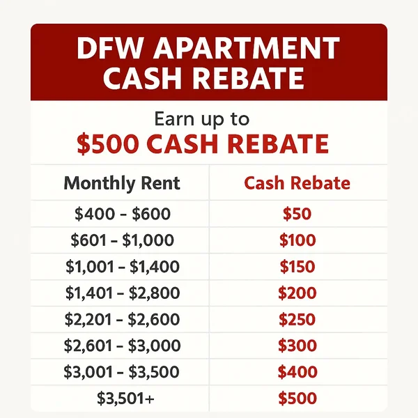 Dallas Fort Worth, TX Apartment Cash Rebate